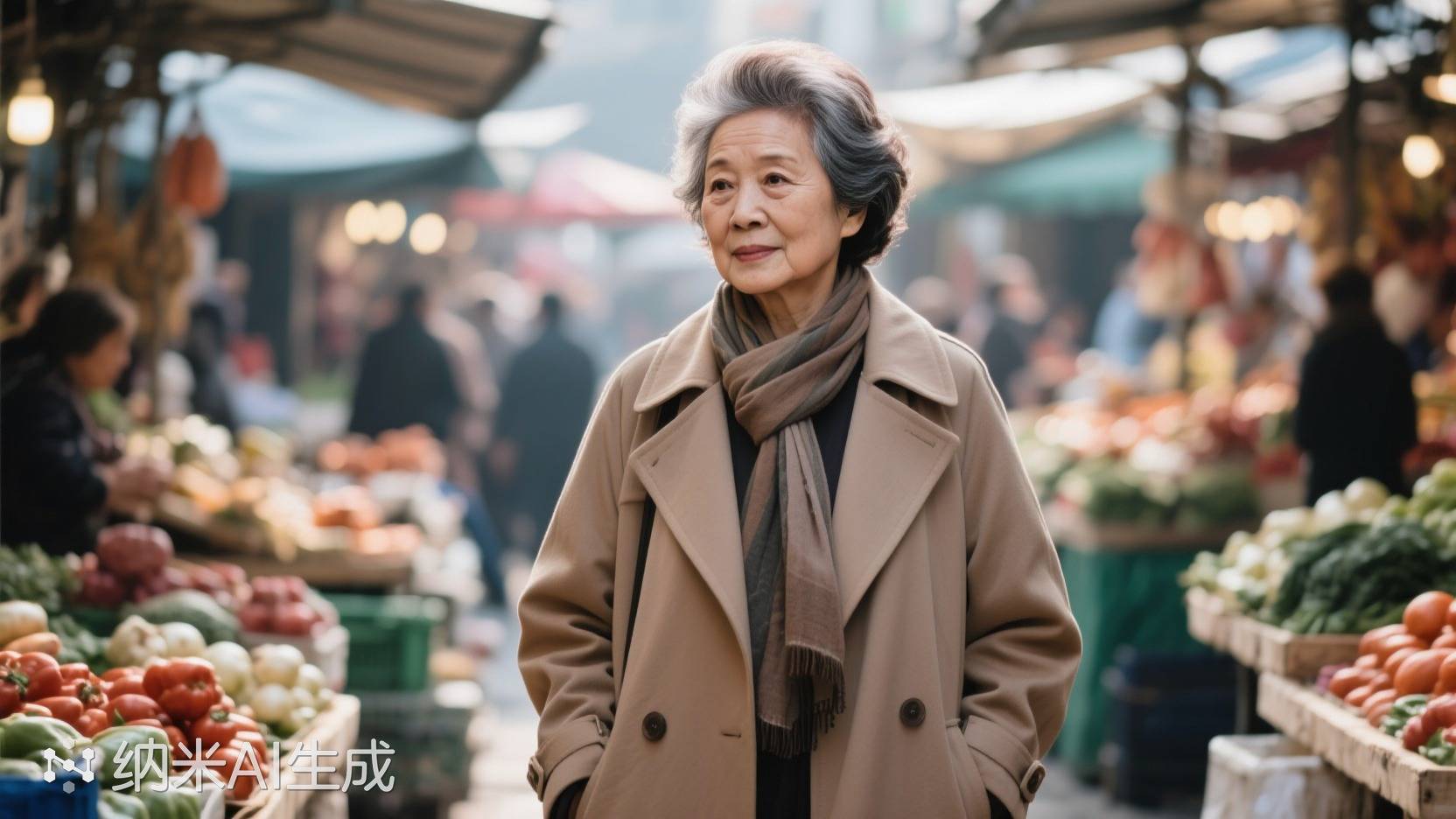57岁吴越菜市场穿搭火了!中年女人学她穿大衣配围巾,洋气又显气质