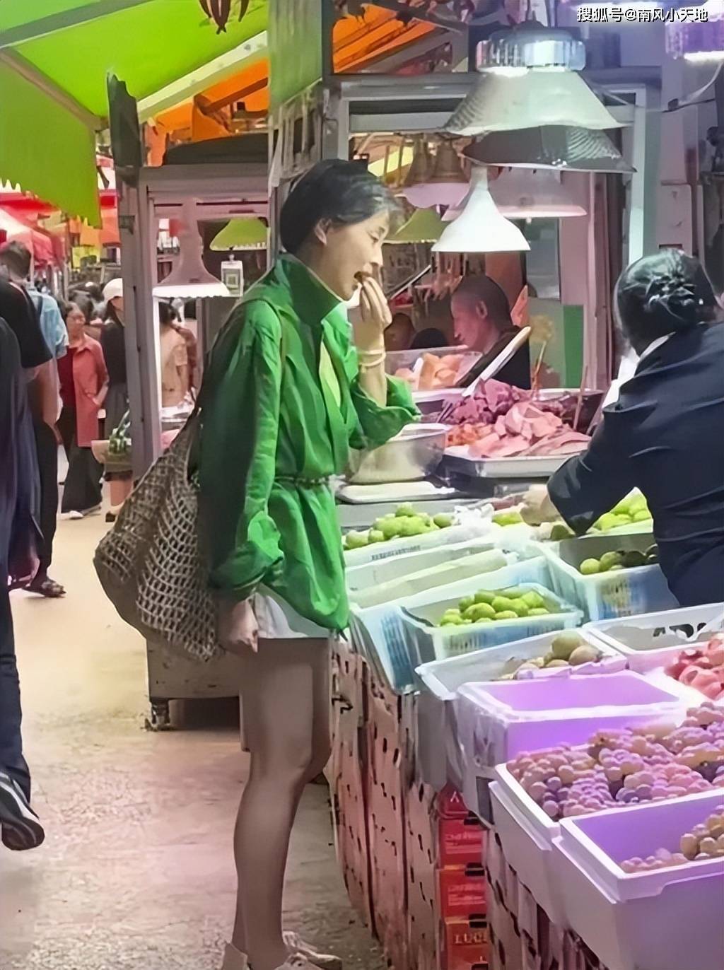 吴越的穿搭哲学里藏着对色彩的独到理解。那件被热议的绿色衬衫,并非简单的「显白利器」,而是通过内搭淡黄色背心形成冷暖撞色,再用红棕色皮带锚定视觉重心,既打破了纯色穿搭的沉闷,又避免了花里胡哨的廉价感。这种「三色法则」尤其适合中年女性:选择一个主色调奠定风格,用邻近色增加层次,最后以小面积对比色提亮——就像她用白色半身裙中和上半身的繁复,让整体造型在菜市场的斑斓背景里依然清爽透气。更难得的是那份松弛感:针织包随意挎在臂弯,短发被风微微吹乱,没有刻意凹造型的紧绷,反倒比红毯造型更具感染力。