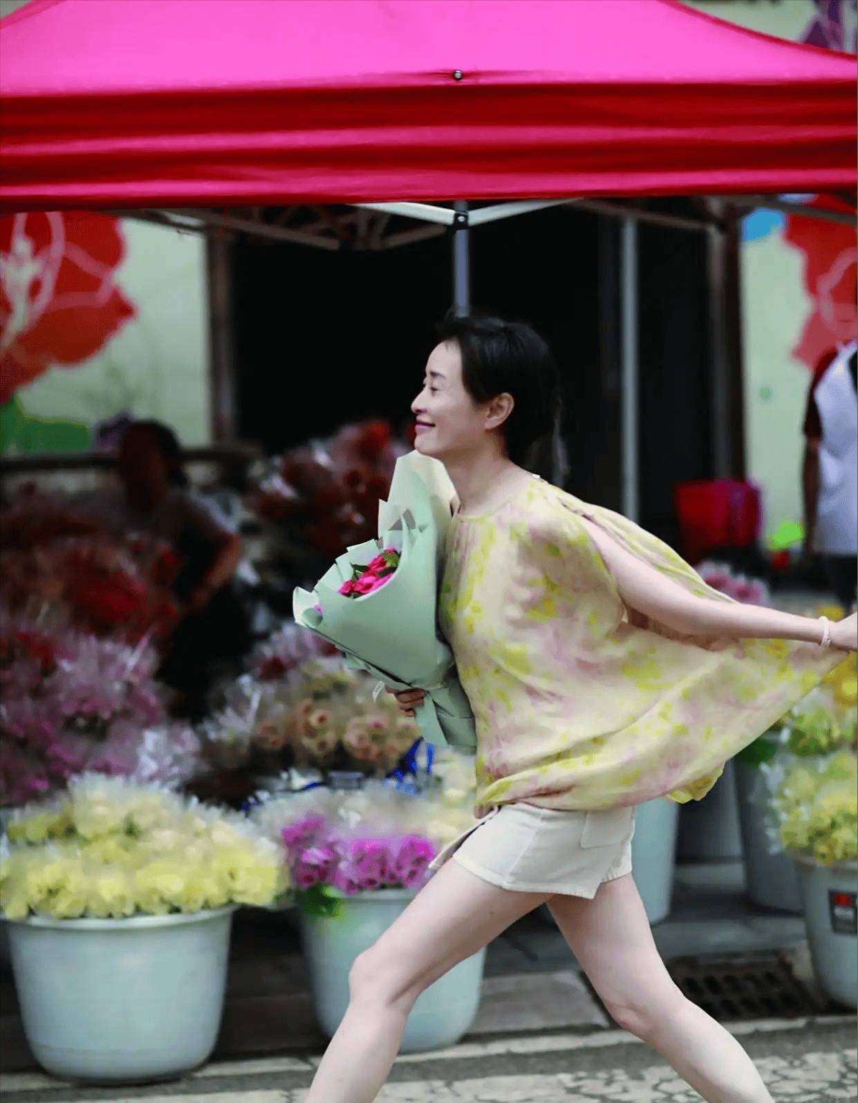 在「少女感」霸屏的审美语境下,吴越的菜市场穿搭撕开了一道裂缝。她从不追求强行减龄,而是坦然接纳岁月赋予的从容气质:微卷的短发露出清晰的下颌线,包臀裙恰到好处地展现曲线而非刻意炫瘦,就连选择的碎花上衣也避开了甜腻的粉嫩,转而用姜黄色调衬托成熟女性的温润光泽。这种「与年龄共生」的智慧,或许比穿搭技巧更值得借鉴——就像她在采访中说的:「衣服是穿给自己的铠甲,舒服了才能抬头挺胸。」当同龄女星还在为少女感焦虑时,她早已在烟火气里找到了属于自己的时尚坐标系。